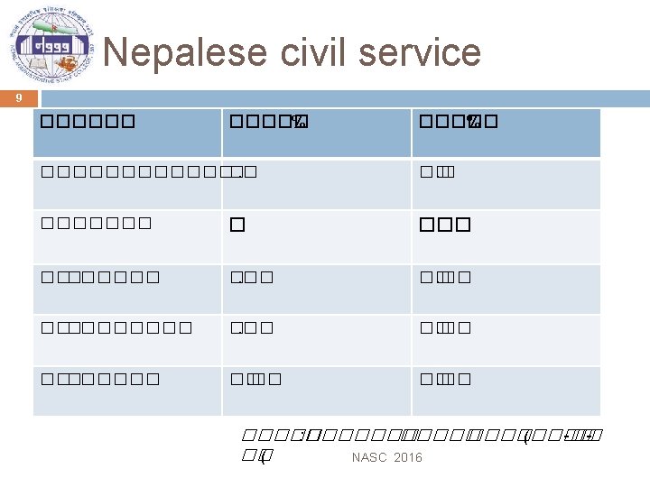 10 BA 1% Dalit 4% Disabled 2% AJ 12% Open 55% Female 15% Madhesi 10% NASC 2016
