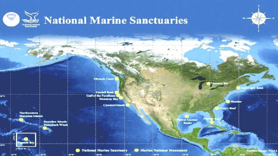 WHAT ARE NATIONAL MARINE SANCTUARIES? • America’s underwater treasures • System of 14 marine protected areas that encompass nearly 250, 000 square kilometers (more than 150, 000) of marine and Great Lakes waters from Washington State to the Florida Keys and from Lake Huron to America Samoa. • These areas have regulations that allow some human activities and do not allow others. • Sanctuaries allow both commercial and recreational fishing unless these fishing activities become destructive to habitats • Each sanctuary has different regulations and these rules protect these special habitats. • Scientists conduct formal research in sanctuaries to learn more about the ecosystems and the organisms that make them their homes.