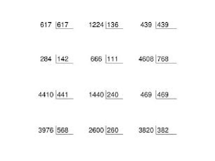 1. Realiza las siguientes divisiones y completa la tabla: 2. Relaciona estas columnas: División Cociente Resto 896 : 23 101 49 6. 218 : 61 38 22 43. 249 : 135 320 57