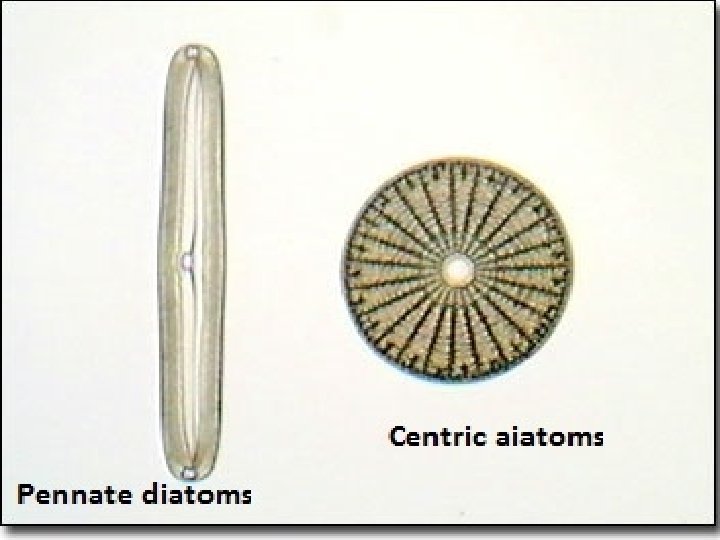 Diatoms are traditionally divided into two orders: • (Centrales), which are Radically symmetrical. • (Pennales), which are Bilaterally symmetrical.