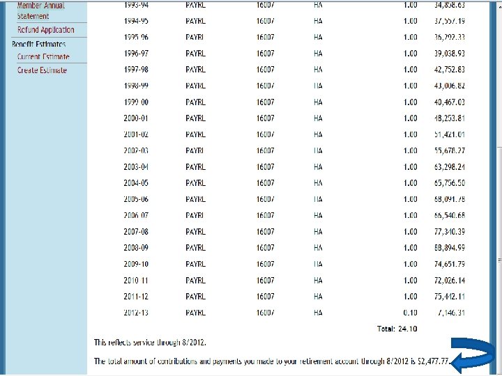Service Credit (Earned With Participating FRS Employers) Work Periods and Fiscal Year Ø Fiscal Year = July 1 through June 30 Ø 9, 10, 11 or 12 month contract Ø 6 months / 12 month contract =. 50 service credit Ø 6 months / 10 months contract =. 60 service credit You receive credit for each month that you have worked Maximum service credit per Fiscal Year = 1. 00