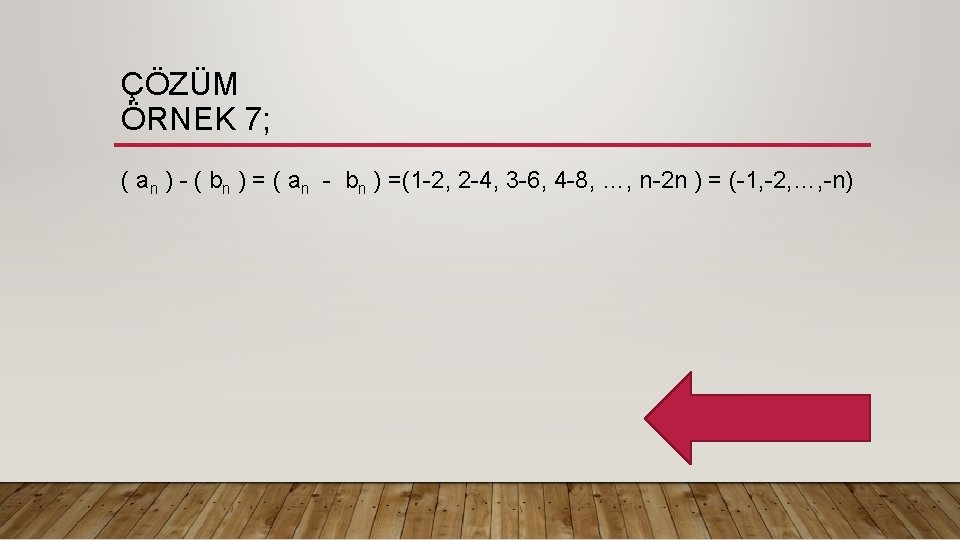 ÖRNEK 7 ( an ) = ( 1, 2, 3, 4, …, n ) ( bn ) = ( 2, 4, 6, 8, …, 2 n) ( an ) - ( bn ) işleminin sonucunu bulunuz. Hatırlamadıysan Bir Kere Daha Bakalım Sorunun Cevabına Götürür