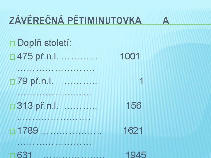 URČOVÁNÍ STALETÍ r. 356 = 4. století za stovkami jiná čísla zaokrouhli nahoru