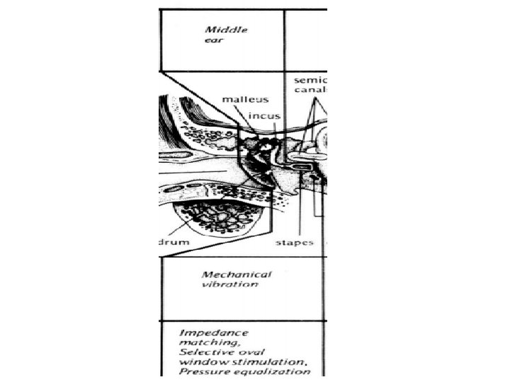 • Oval pencerede kemikçik zinciri ile aktarılan daha yüksek basınç uygulaması gerçekleşmeseydi, oval ve yuvarlak pencerelere benzer bir ses basınç düzeyi uygulanacaktı ve böylece çok küçük basınç farkı elde edilecekti. Bu nedenle iç kulak yapılarını etkili bir şekilde harekete geçirmek için orta kulak mekanizmalarına ihtiyaç vardır.