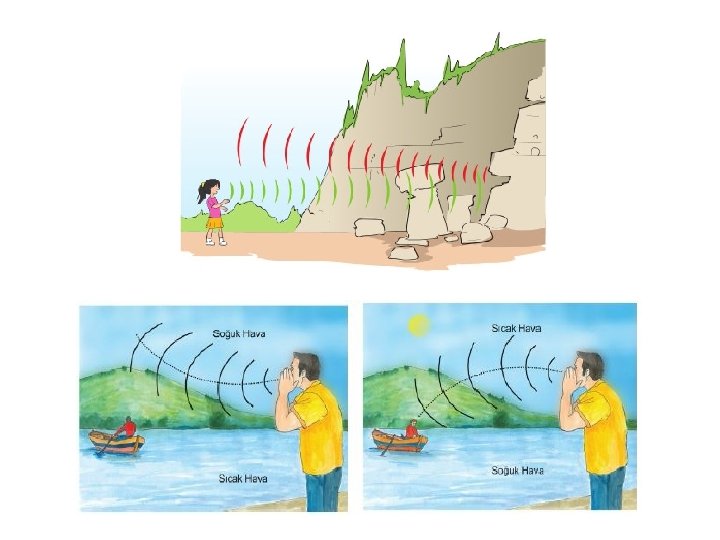 Ses Hızı • • 0 derece kuru havada 330 m/s Havadaki su buharı sesin hızını arttırır Sıcak havada ses daha hızlı yayılır O derece üzerinde her bir derecede ses hızı 0, 6 m/s artar