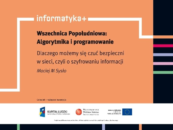 Dlaczego możemy czuć się bezpieczni w sieci czyli o szyfrowaniu informacji Maciej M. Sysło Uniwersytet Wrocławski Uniwersytet UMK w Toruniu syslo@ii. uni. wroc. pl informatyka + 2