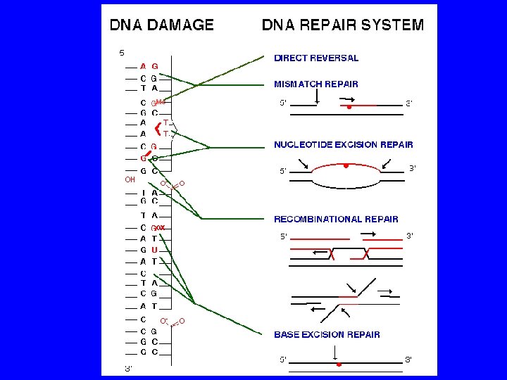 DNA repair Damage of DNA is carefully controlled constitutively expressed proteins Changes in DNA induction of reparation enzymes ("SOS-repair") = biomarker of DNA damage