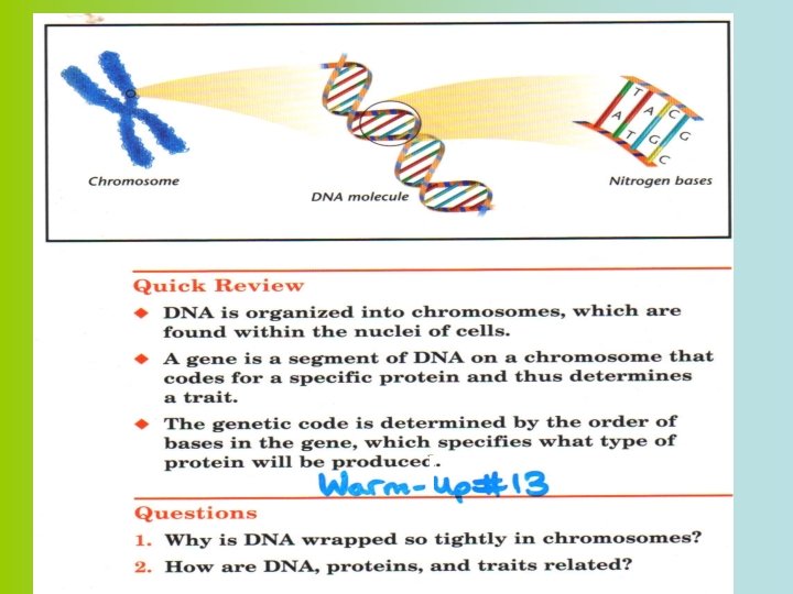 The Code of Life… • The “code” of the chromosome is the SPECIFIC ORDER that bases occur. A T C G T A T G C G G…