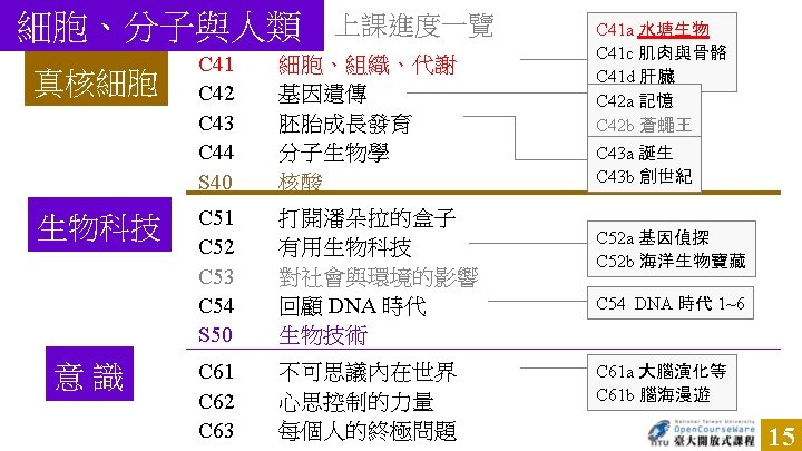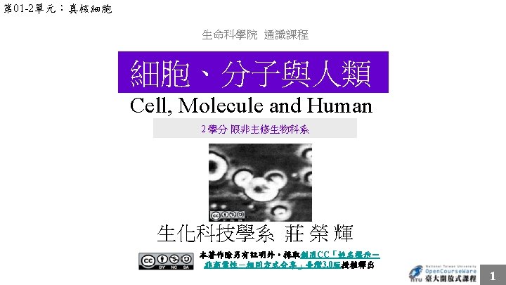 頁碼 作品 版權標示 作者 / 來源 5 Wikia / Skyhopper (http: //nl. starwars. wikia. com/wiki/The_Force), 瀏覽日期 2012/04/12。 8 WIKIPEDIA (http: //de. wikipedia. org/w/index. php? title=Datei: Nucleus%26 Nucleolus. gif&filetim estamp=20070513085709),瀏覽日期 2012/03/09。 9 維基百科 (http: //zh. wikipedia. org/zh-hk/File: Cork_Micrographia_Hooke. png), 瀏覽日期 2012/03/09。 9 brookscole (http: //www. brookscole. com/biology_d/templates/student_resources/0030270448_t obin/webbit/ch 04 -01. html), 瀏覽日期 2012/03/09。依據著作權法第 46、52、65 條合理使用。 9 Molecular Biology of The Cell (4 e 版本), Bruce Alberts 著,Garland Science,2002。第 31 -32 頁次, 依據著作權法第 46、52、65 條合理使用。
