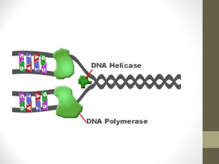 Replication Helicases uncoils and unzip the DNA polymerases builds new strands using old strands as a template.