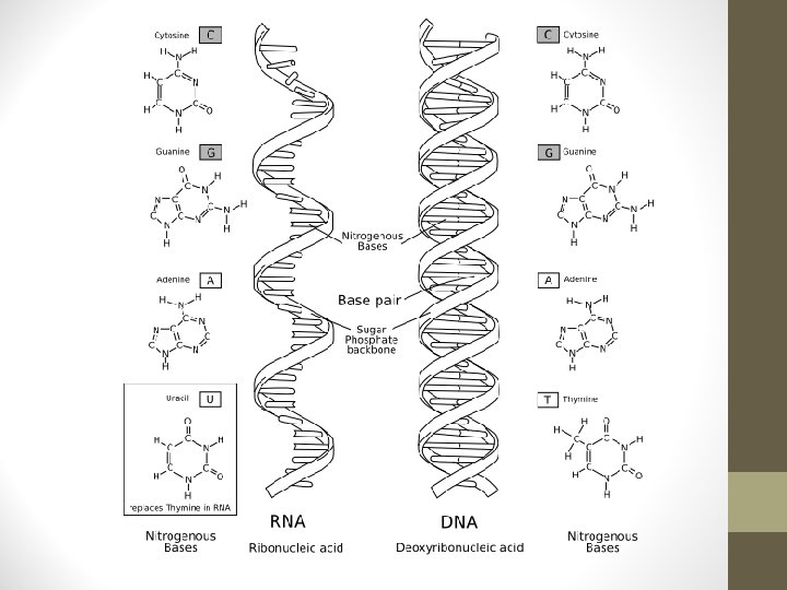 Is DNA the only type of Nucleic Acid? DNA Double Stranded A, T, G, C Deoxyribose Sugar vs. RNA Single Stranded A, U, G, C Ribose Sugar