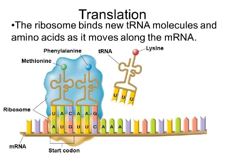 Translation (Protein Synthesis) t. RNA working off of m. RNA