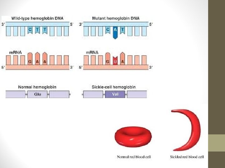 Mutation in DNA shown in red: ______ , ______ becomes: ______ , ______