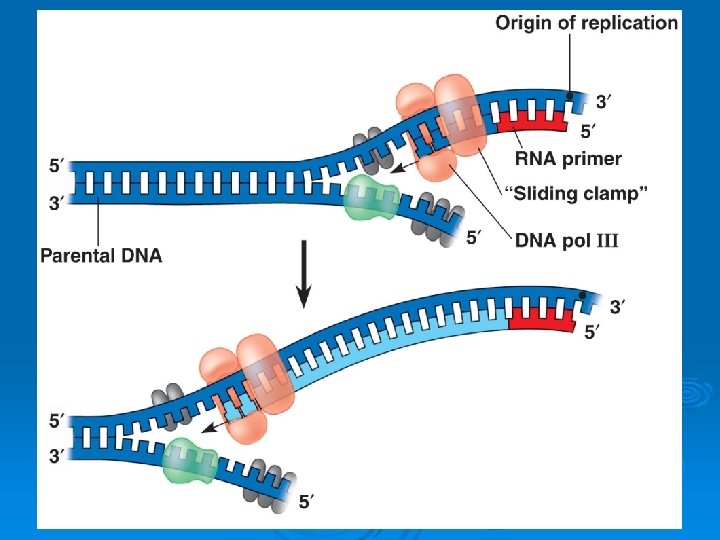 Problem of Antiparallel DNA Ø The two DNA strands run antiparallel to each other. Ø DNA can only elongate in the 5’--> 3’ direction.