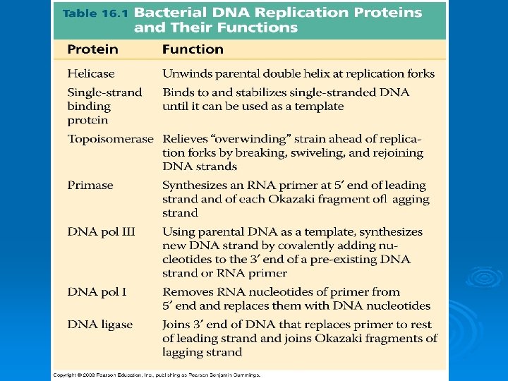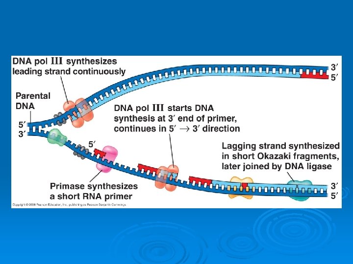 Enzymes Ø DNA pol I - replaces RNA primers with DNA nucleotides. Ø DNA Ligase - joins all DNA fragments together.