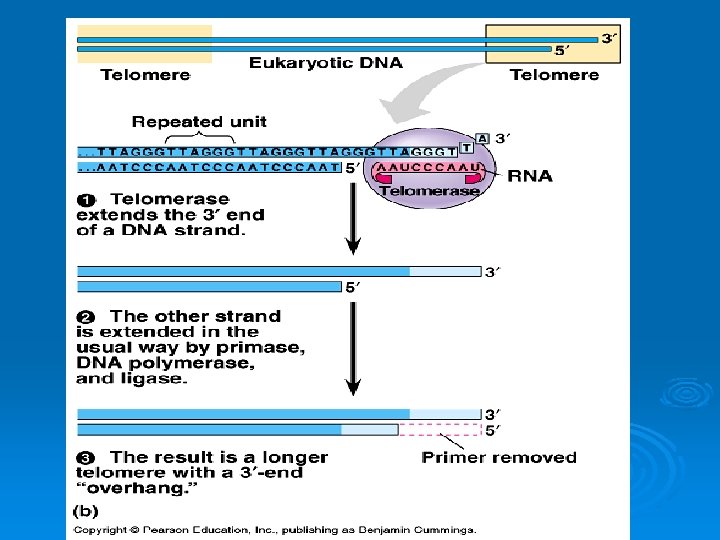 Telomeres Ø Serve as a “clock” to count how many times DNA has replicated. Ø When the telomeres are too short, the cell dies by apoptosis.