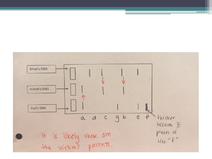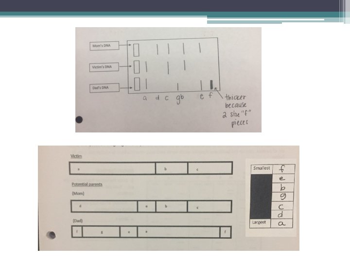 Dominant Allele from Mom Recessive Allele from Dad x 2 1 2 3 Thicker because there are 2 sized “ 5” pieces 4 5 In the third lane, sketch a HOMOZYGOUS RECESSIVE genotype