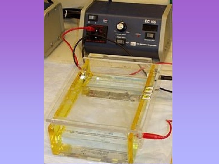 Gel electrophoresis § A method of separating DNA in a gelatin-like material using an electrical field DNA is negatively charged u when it’s in an electrical field it moves toward the positive side u DNA – “swimming through Jello” +