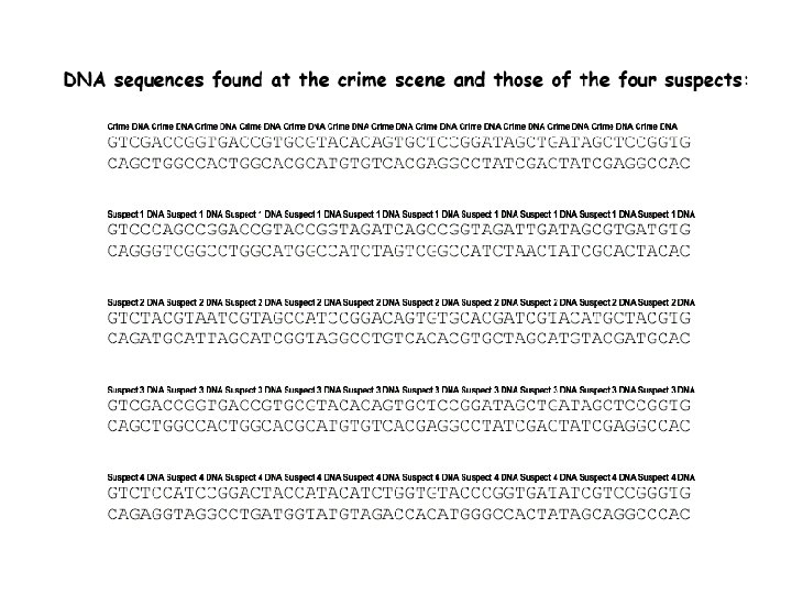 DNA fingerprints § Comparing blood samples on defendant’s clothing to determine if it belongs to victim u DNA fingerprinting