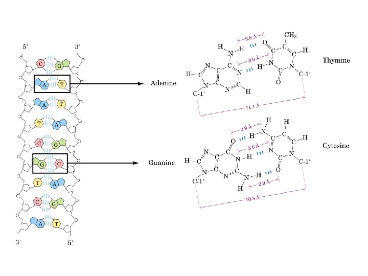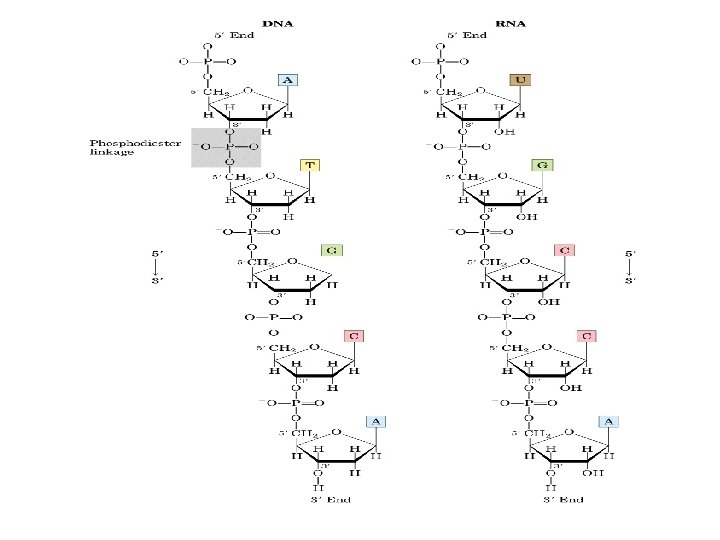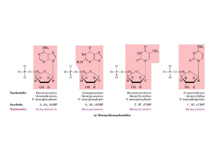 Proprietà basi azotate influenzano la funzione degli acidi nucleici : • moderatamente basiche • altamente coniugate (influenza assorbimento della luce UV a 260 nm) • idrofobiche a p. H neutro (influenza sull’impilamento) • possibilità di formare legami a H, per la presenza di N e C=O L’impilamento riduce l’assorbimento UV rispetto a una uguale concentrazione di nucleotidi liberi (effetto ipocromico). Lo specifico appaiamento delle basi consente la duplicazione dell’informazione genetica con la sintesi di catene di a. n. complementari.