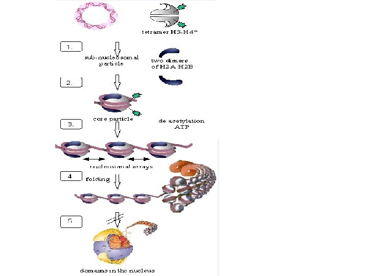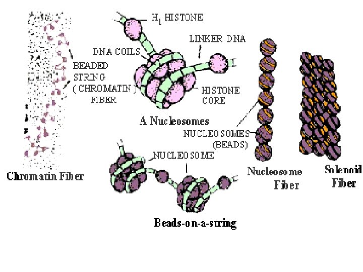v Neighboring nucleosomes are joined by “linker” DNA approximately 50 base pairs long v Histone H 1, of which there are several related species, is not found in the nucleosome core, but instead binds to the linker DNA chain between the nucleosome beads v H 1 is the most tissue-specific and species-specific of the histones v It facilitates the packing of nucleosomes into the more compact structures