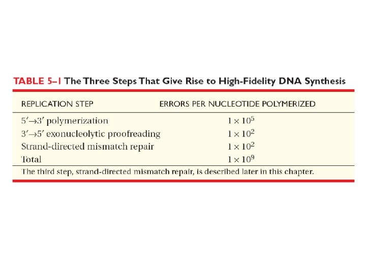 DNA Maintenance • Mutation rate are extremely low • 1 mutation out of 109 nucleotides per generation