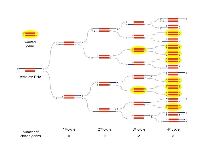 2. 7. A 1 Use of Taq DNA polymerase to produce multiple copies of DNA rapidly by the polymerase chain reaction (PCR). To summarise: PCR is a way of producing large quantites of a specific target sequence of DNA. It is useful when only a small amount of DNA is avaliable for testing e. g. crime scene samples of blood, semen, tissue, hair, etc. PCR occurs in a thermal cycler and involves a repeat procedure of 3 steps: 1. Denaturation: DNA sample is heated to separate it into two strands 2. Annealing: DNA primers attach to opposite ends of the target sequence 3. Elongation: A heat-tolerant DNA polymerase (Taq) copies the strands • One cycle of PCR yields two identical copies of the DNA sequence • A standard reaction of 30 cycles would yield 1, 073, 741, 826 copies of DNA (230)