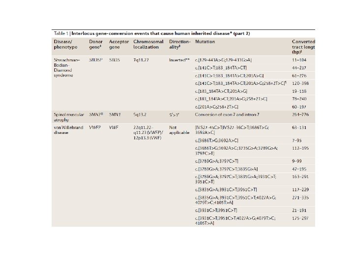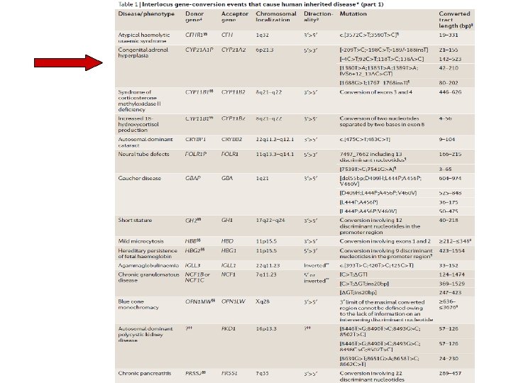 • Gene-conversion events have been implicated as the molecular cause of an increasing number of human inherited diseases. • Pathogenic gene conversion - the transfer of genetic information from non-functional pseudogenes to their closely related functional genes. • Events in which pseudogenes have acted as donors resulted in the functional loss of the acceptor genes through the introduction of frameshifting, aberrant splicing, nonsense mutations, deleterious missense mutations and so on.