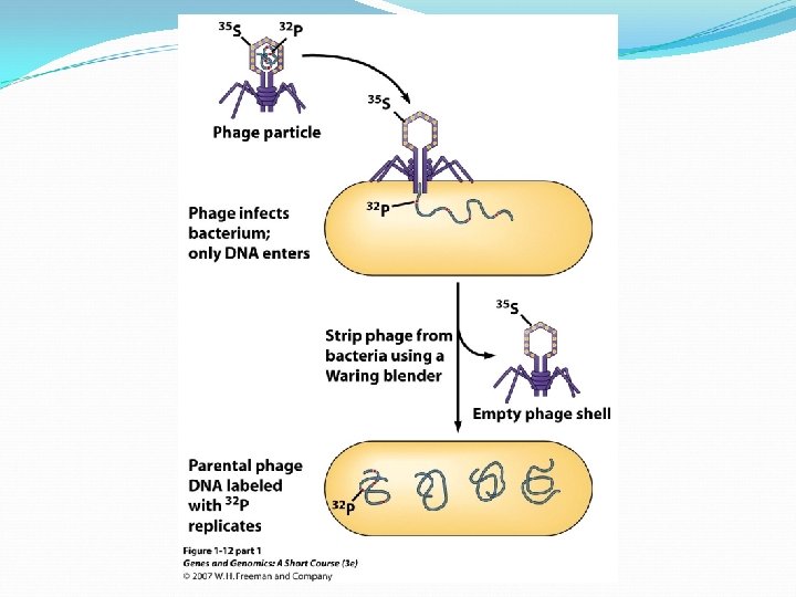In 1952, Alfred D. Hershey and Martha Chase confirmed DNA is the genetic material T 2 bacteriophage (virus that attacks bacteria) consists of DNA core packed in protein coat Phage DNA alone carries genetic information
