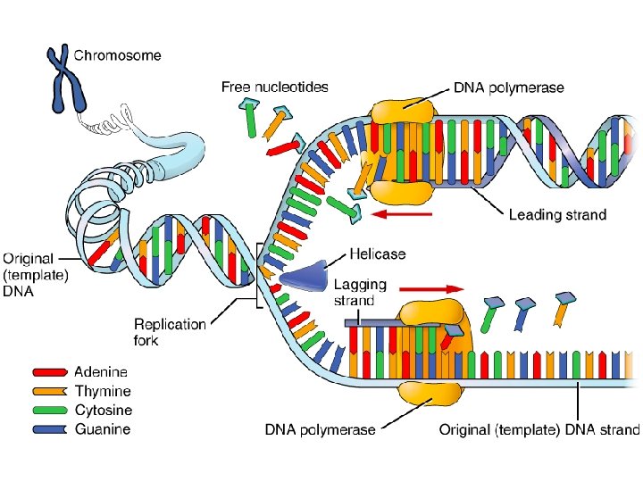 Replication • Describe where each strand of DNA from parent molecule ends up. • What is the main enzyme involved in this process?