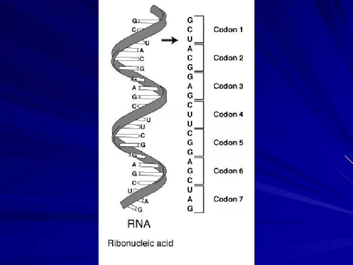 DNA and RNA Deoxyribose Nucleic Acid Double stranded Thymine Base Genetic information storage Ribonucleic Acid Single stranded Uracil Base instruct the making of proteins (protein synthesis) Three types – messenger. RNA (m. RNA) – transfer. RNA (t. RNA) – ribosomal. RNA (r. RNA)