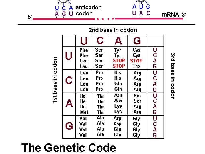m. RNA Makes a complimentary template of DNA sequence Codon-three-nucleotide sequence on m. RNA that codes for an amino acids Amino Acids are the building blocks of proteins
