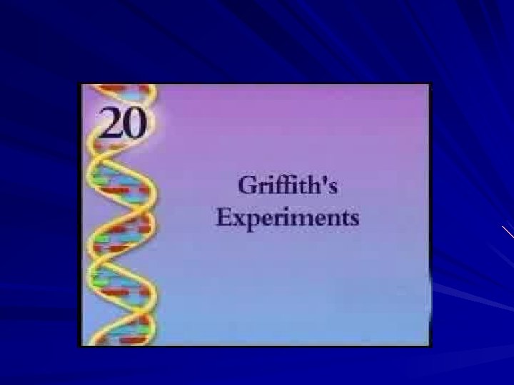 Griffith’s Experiment Section 12 -1 Heat-killed, disease -causing bacteria (smooth colonies) Disease-causing bacteria (smooth colonies) Harmless bacteria Heat-killed, disease(rough colonies) causing bacteria (smooth colonies) Dies of pneumonia Lives Control (no growth) Live, disease-causing bacteria (smooth colonies) Harmless bacteria (rough colonies) Dies of pneumonia