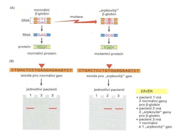 DNA, RNA sondy Co je to sonda a k čemu je dobrá? Sonda - molekula nukleové kyseliny, použitelná k vyhledání určité sekvence ve vzorku testované DNA nebo RNA. Princip: schopnost jednovláknových molekul nukleových kyselin hybridizovat, pokud obsahují komplementární sekvence. Hybridizace – vznik stabilních vodíkových můstků mezi sondou a vyšetřovanou molekulou DNA Komplementárna sekvencia - vždy se páruje adenin v jednom řetězci s tyminem ve druhém řetězci (A-T pár) guanin v jednom řetězci s cytosinem ve druhém řetězci (G-C pár). Význam a použitie: Sondu si můžeme uměle připravit tak, aby měla námi zvolenou sekvenci. potom touto sondou můžeme dokázat pritomnost komplementarnej sekvencie ve vyšetrovaném vzorku nukleových kyselin. Přítomnost komplementárnej sekvencie = přítomnost chorobné nebo zdravé alely genu