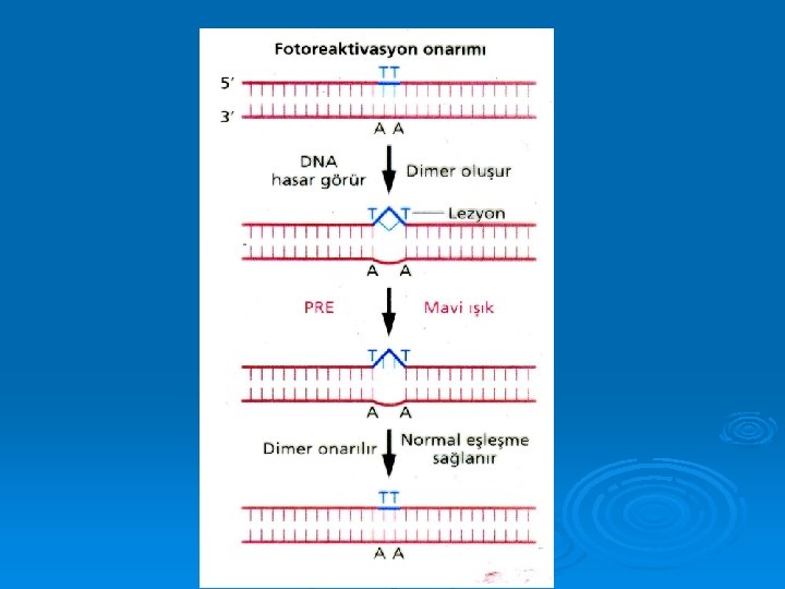 Timin dimerleri önce özel bir endonükleaz taafından tanınır sonra hasarlı kısmın iki tarafından zincir kırılır 76
