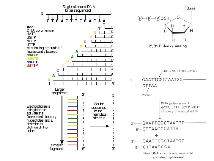 Chain Terminator Basics Target Template-Primer TGCA dd. A Extend dd. A Add. C AC dd. G ACG dd. T dd. C dd. G Labeled Terminators d. N : dd. N 100 : 1