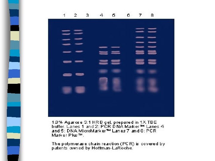 5) This causes separation of the DNA into bands. The gel is left to set 6) When combined with staining or X-ray film, the patterns are used to determine the presence or absence of particular DNA or proteins