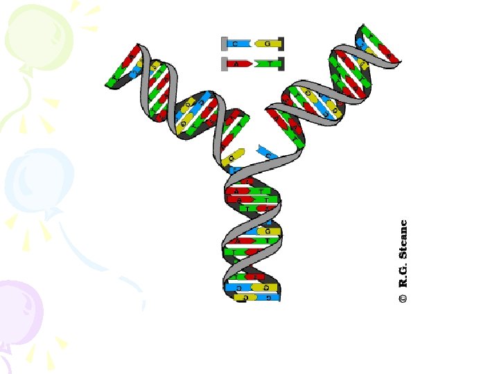 DNA’nın iki ipliği birbirinden ayrılmaya başlar. Sitoplazmada serbest hâlde bulunan nükleotitler çekirdeğin içerisine girer ve DNA’nın açılan kısmındaki nükleotitlerle eşleşir. Bu eşleşme sırasında, adenin nükleotitin karşısına timin nükleotit, sitozin nükleotitin karşısına da guanin nükleotit gelir.
