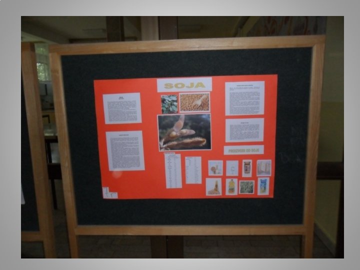 SVIBANJ • nadnevka 4. 5. obavljena je sjetva soje • učenici 7. razreda istraživali su svojstva i sastav soje • na osnovu podataka izradili su plakat koji su izložili u holu škole