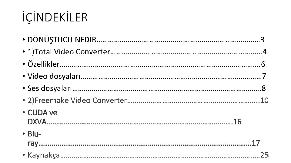 Total Video Converter ØTotal Video Converter, video ve ses dosyalarınızı farklı formatlara dönüştürerek PSP, i. Pod, i. Phone, Xbox ve diğer taşınabilir cihazlarla uyumlu şekilde kullanabilmeniz için tasarlanmış bir ses ve video dönüştürücüdür. Program farklı kalite ve hız seçenekleriyle birçok ses ve video formatı için geniş codec seçeneği sunmaktadır. 4