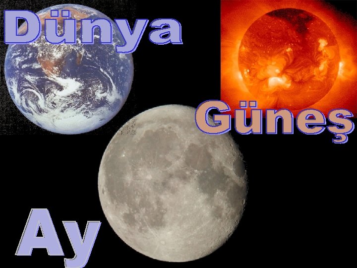 Dünya, Güneş ve Ay sonsuz uzay içersinde bizim en fazla karşılaştığımız uzay nesneleridir. Dünya; Üzerinde yaşadığımız gezegenimizdir.
