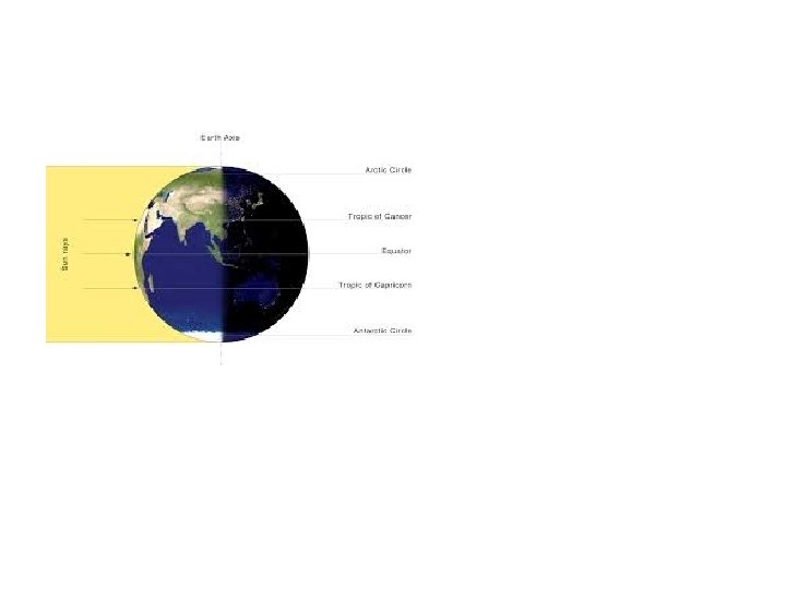 Seasons • Earth has seasons because its axis is tilted as it revolves around the sun. • The north end of Earth’s axis is tilted toward the sun for part of the year and away for part of the year. • Change in season is not caused by a change in distance from the sun!