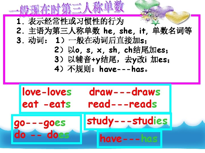 plays dances writes makes draws catches grows watches fly flies go goes do does study studies have has