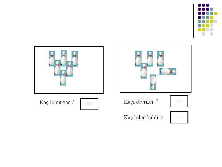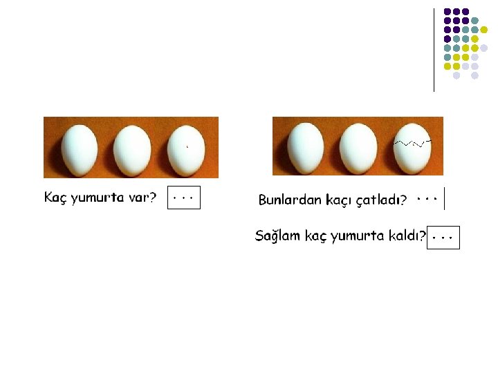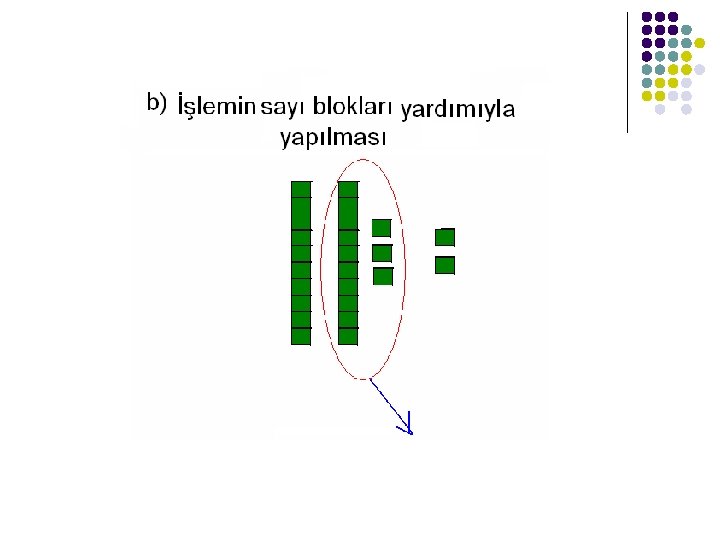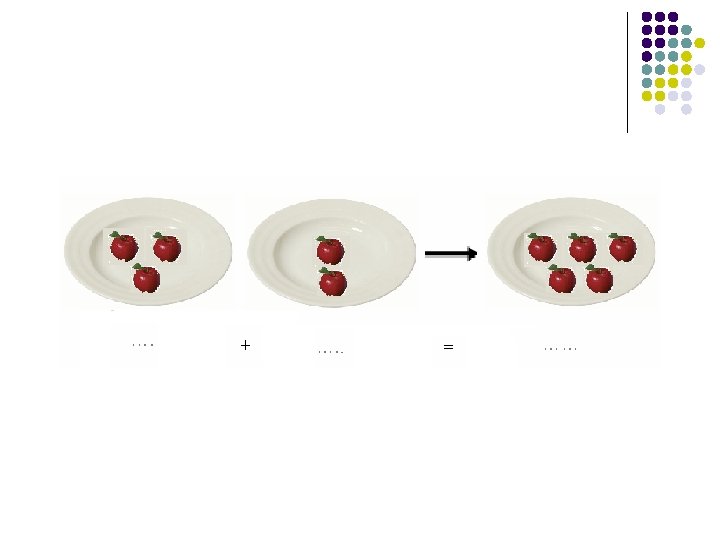 1)Toplamanın materyalle yapılması l Toplama işleminin tekniği önce somut materyaller, resimli materyaller yoluyla kazandırılmaya çalışılır.