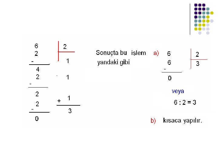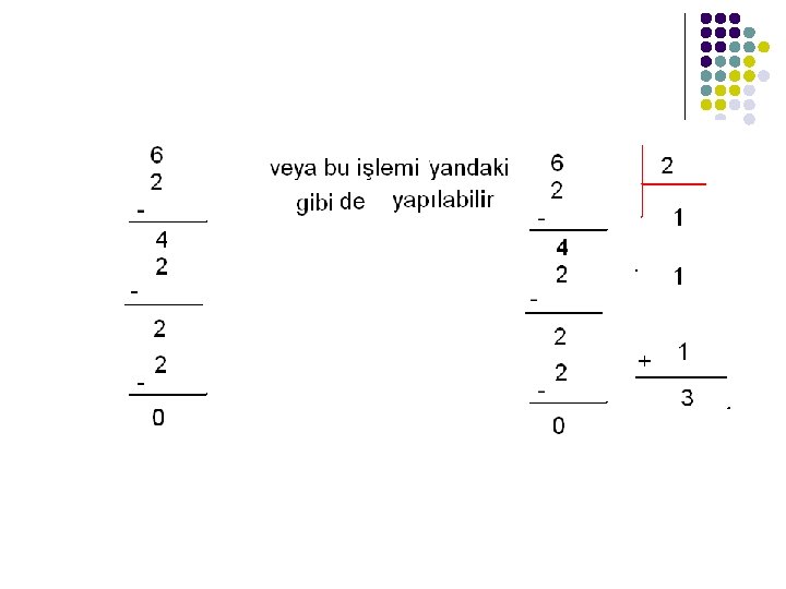 l Bu iş yapılırken aşağıdaki gibi arda (elmalar bitinceye kadar) çıkarma işlemi yapılmıştır.