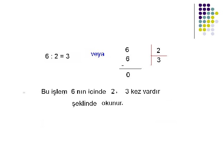 l 6’ nın 2’ ye bölümü 3 tür l Biçiminde okunur.