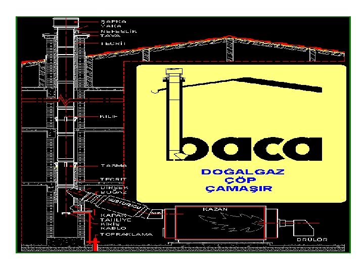 BACALAR • DOĞALGAZ YANMASIDAN ORTAYA ÇIKAN GAZ İÇİNDEKİ SU BUHARI ORANI %19 -24 ORANINDADIR. AYNI ZAMANDA FAZLA MİKTADA DA AZOT OKSİTLER AÇIĞA ÇIKAR. BU DA BACADA ASİDİK YOĞUŞMAYA BACANIN BOZULMASINA NEDEN OLUR. • YIPRANMIŞ, SIVANMAMIŞ, SIZDIRMAZLIĞI OLMAYAN, BÜYÜK KESİTLİ ve İZOLASYONU İYİ OLMAYAN BACALAR YOĞUŞMAYA NEDEN OLUR. • YÜZEYİ PÜRÜZSÜZ, DAİRESEL KESİTLİ, ÇABUK ISINIP GEÇ SOĞUYAN VE KOROZYONA DAYANIKLI PASLANMAZ ÇELİK/ALUMİNYUM SAÇ MALZEMEDEN YAPILMIŞ OLMALI. TAŞ YÜNÜ VEYA BEYAZ CAM YÜNÜ İZOLASYON MALZEMESİ KULLANILMALIDIR. DIŞ CIDAR KAPLAMASI SU GEÇİRMEMELİDİR.