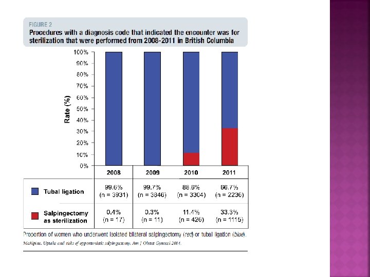 Yapılan bu çalışmada: SEROZ OVER EPITELYAL OVER CA VE PRIMER PERITENOEL KARSINOMAYI AZALTMAKTADIR Eksizyonel tubal sterilizasyon teknikleri %64 Tüm tubal sterilizasyon %41 Distal fimbriektomi, total salpenjektomi %78 Bu durum fimbria eksizyonunun, seröz EOC ve PPC da daha fazla azalmış risk ortaya koyabileceğini düşündürmektedir.