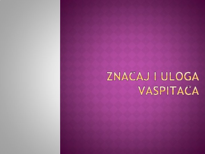 � Najčešću omašku vaspitači čine time što decu uče najčešće igrama kojima su njih učili. � Vaspitanje je “rat” koji se najlakše dobija umešnošću i dobrim poznavanjem “protivnika”. � Zato jednom naučenom, stečenom, uvek treba dodavati nešto novo i menjati ne samo druge, nego i sebe. � Dobar vaspitač ima više Iica, ali samo JEDNO srce. To je srce dobrog čoveka.