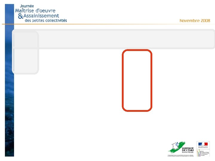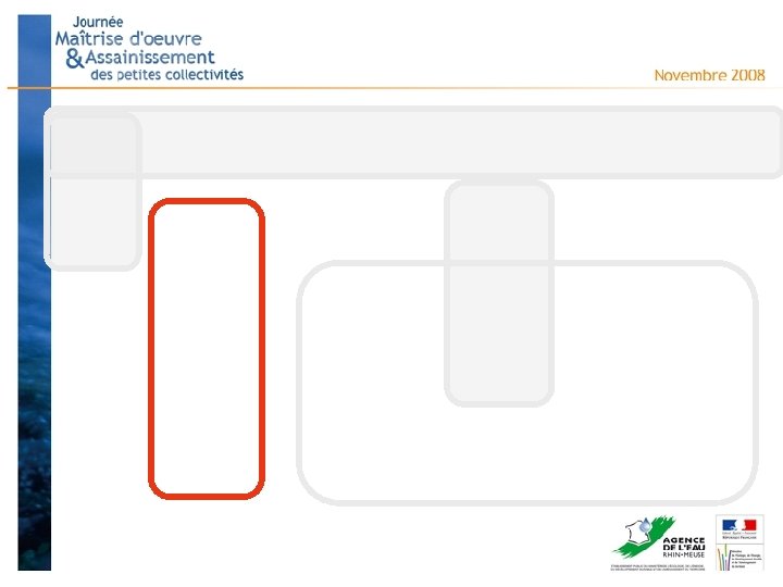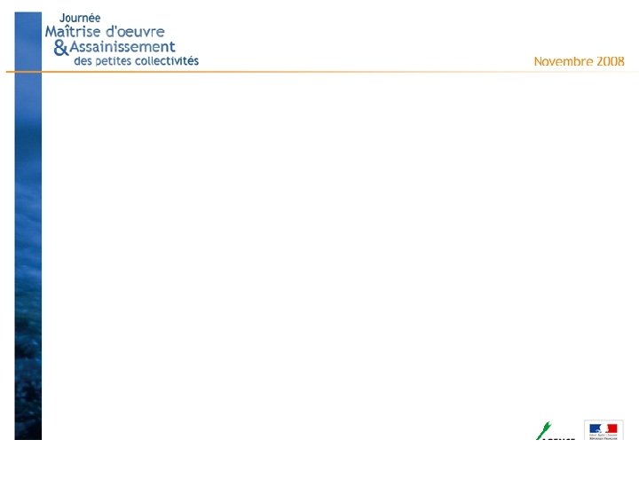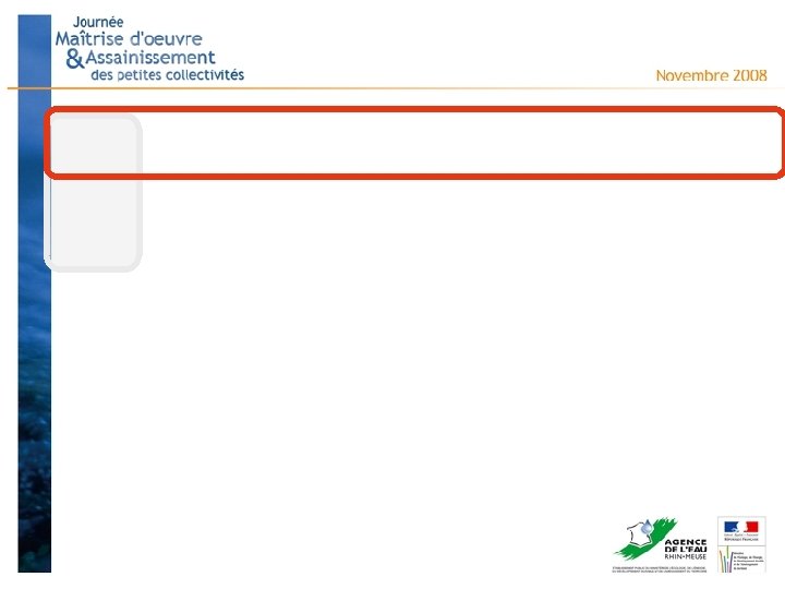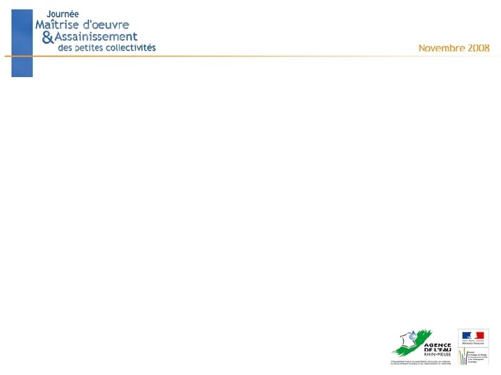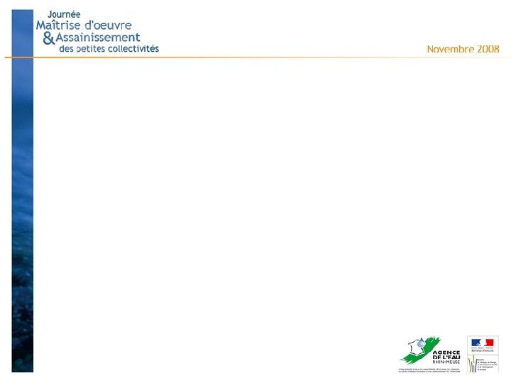 Contexte • Une situation transitoire dans l’attente du futur SDAGE qui fixera les nouveaux objectifs de qualité pour les milieux récepteurs • De nouveaux textes réglementaires en matière d’assainissement qui sont sujet à interprétation notamment vis à vis du traitement approprié des petites collectivités • Un discours parfois hétérogène entre les différents services (police de l’eau, AERM, conseils généraux)